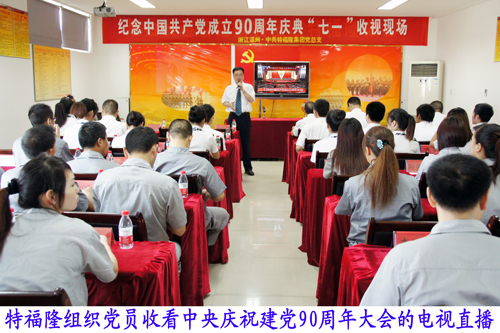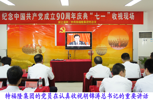 7月1日上午,特福隆集团50多名党员怀着激动的心情,收听收看了庆祝建党90周年大会盛况的电视直播,对胡锦涛总书记的重要讲话进行了认真收视学习。