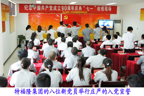 在这举国上下都在庆祝中国共产党成立90周年的大好时机,特福隆的八位新党员也举行了庄严的入党宣誓。