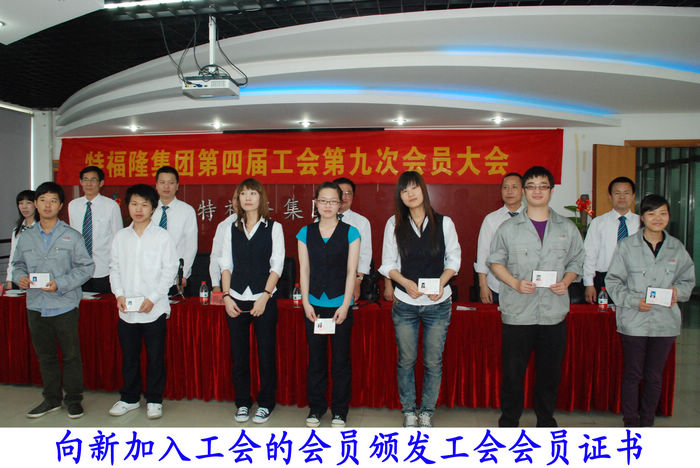 会上,在自愿加入原则的基础上,经新员工申请和公司工会批准,有25名新员工如愿以偿地加入了中华全国总工会组织,成为了工会的一员,并获得工会会员证。这意味着25名新员工将融入特福隆集团这一职工的队伍,踏上争当主人翁的新征程。