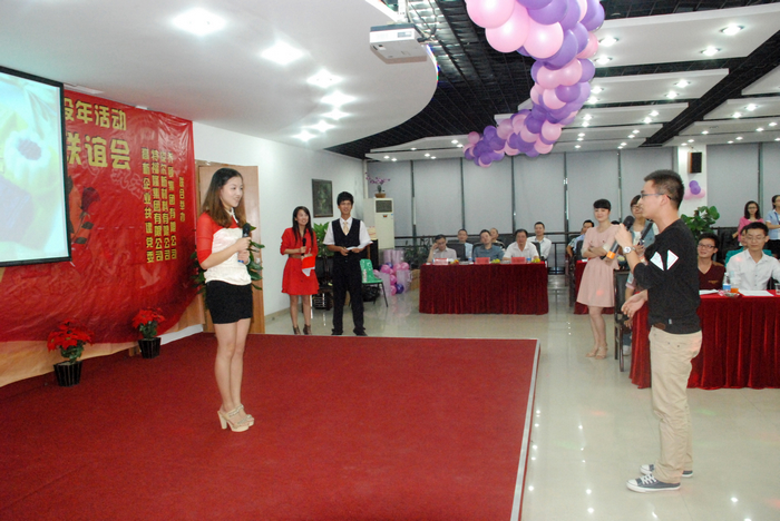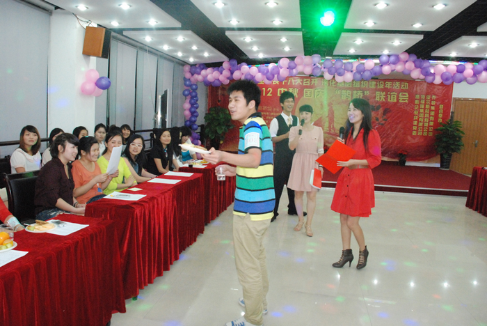 这是每个男女表现自我打动心仪另一半的相亲相爱联谊会。晚会张灯结彩,洋溢着节日的气氛。联谊会在特福隆集团党总支书记李锦硕为晚会致辞并向晚会现场所有的领导和员工致以节日的问候和诚挚的祝福声中拉开了序幕。第一阶段为自我展示,男女青年可以展示个人特长;第二阶段为互动阶段,男女相邀共同做游戏;第三阶段为相亲相爱,送上玫瑰花牵手成功。