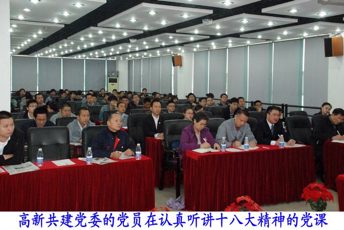 党的十八大会议刚结束,中共高新企业共建委员会就动员部署高新园各非公企业立即行动,迅速掀起学习宣传贯彻党的十八大精神热潮。不久前,高新共建委学习中共十八大精神宣贯会在特福隆集团隆重召开,聘请了市委党校梁德君教授主讲“十八大精神”的党课,来自高新企业共建委各企业的90名党员参加了上党课。