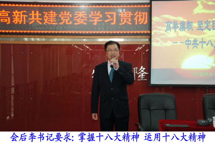 会后,高新企业共建党委李锦硕书记要求各党组织及每位党员,学习好十八大精神、掌握好十八大精神、运用好十八大精神。