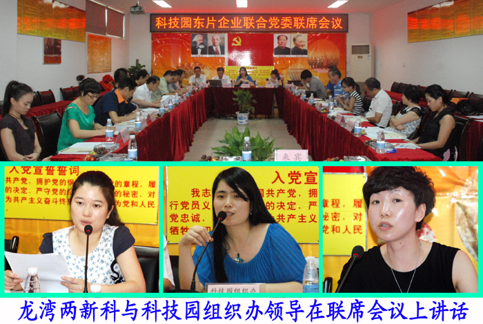 会上,龙湾区两新科王霞科长和科技园组织办王余余主任为东片企业联合党委授牌;李锦硕书记代表联合党委提出了下半年的10项工作计划和八项工作职责;龙湾区组织部两新科王霞科长和科技园组织办王余余主任分别做了重要讲话。