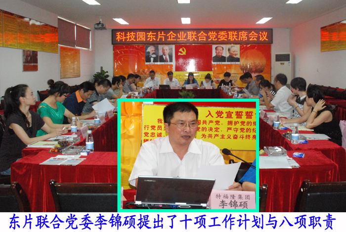 会议在庄严肃穆的国歌声中拉开帷幕,由科技园组织办孙俊巧宣读了成立了科技园东片企业联合党委的批文,批复了以特福隆、爱好笔业、源大资源、俊尔新材料、佳易仪器等为委员单位,特福隆李锦硕为党委书记,爱好笔业尚继保与源大资源华芝为党委副书记。