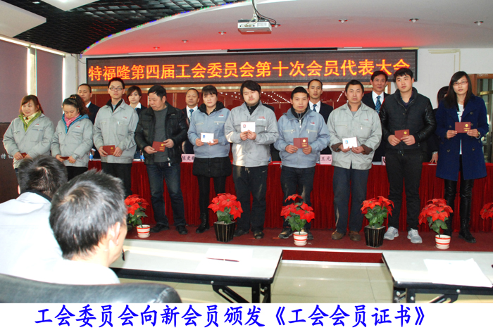 本次会议由副总经理、工会委员徐建仁主持,工会主席陈更新首先做《2013年度工会工作总结及2014年工会工作计划的报告》,工作报告总结了2013年工会开展的各项文体活动,爱心帮扶活动,维护职工权益活动,实施企业民主管理。特福隆工会充分发挥工会的桥梁和纽带作用,积极抓好职工队伍建设,努力推进民主管理、民主监督,切实维护全体职工的合法权益,关心职工生活,全心全意帮助职工解决实际困难,为创建和谐企业发挥了积极的作用。