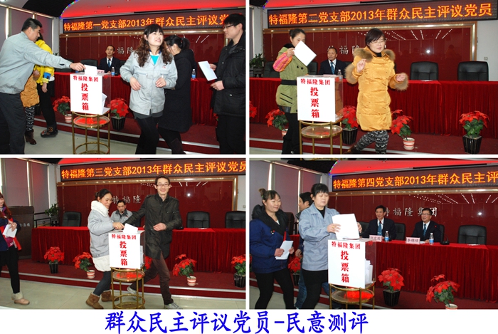 为全面深入贯彻党的十八大和十八届三中全会精神,不断加强党组织对党员的教育、管理和监督,不断强化党员意识,保持党员先进性,增强党组织的凝聚力和战斗力,日前,特福隆集团党总支认真开展了2013年度民主评议党员活动。