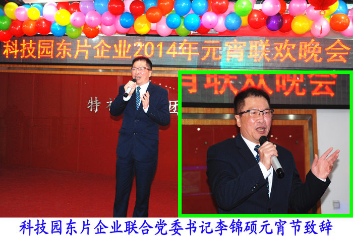 晚会张灯结彩,一排排元宵灯笼高高悬挂,洋溢着马年元宵佳节的喜气氛围。高新区科技园东片企业联合党委李锦硕书记在晚会上致辞,他向出席晚会的各单位领导与来宾致以节日的问候和诚挚的祝福。李书记建议对这样的联谊活动要经常举行,要让员工自我发挥自我展示,能更好地营造和谐促进企业间的文化交流。