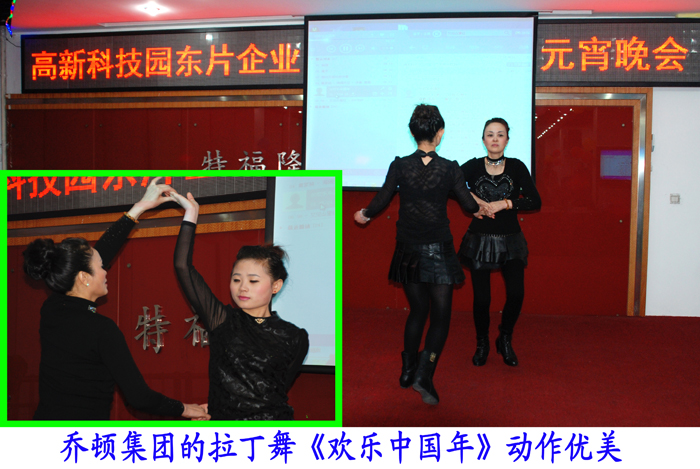 展望2014,我们胸怀激情,踏歌而行。”随着两位主持人的登台亮相和深情表白,为元宵联欢晚会拉开序幕。本次晚会主要由节目表演、互动游戏和抽奖活动三个环节组成,精心的晚会编排设计、绚丽的舞台、精彩的节目、有趣的游戏互动、悬念迭起的颁奖等使得整场晚会精彩不断,高潮迭起,不时赢得全场热烈掌声,欢呼声一浪高过一浪。节目形式包括歌曲、拉丁舞、魔术、诗朗诵、民族舞、瑜伽、迪斯科舞、对唱等。欢乐与激情是本次晚会的主基调,贯穿于整台晚会始终:乔顿集团的拉丁舞《欢乐中国年》动作优美、曲调悠扬,引人入胜;爱好笔业的歌曲《感动天