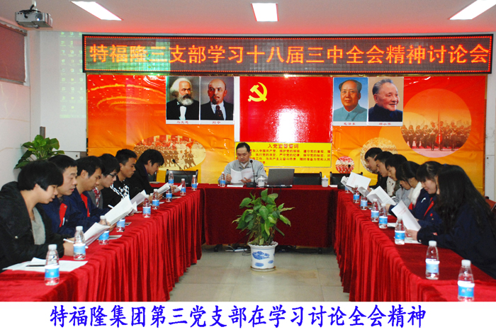 最近,特福隆党组织给每位党员发放了一本由人民出版社发行的十八届三中全会《中共中央关于全面深化改革若干重大问题的决定》的小册子,在特福隆集团党政学校里又举办了一堂深入学习十八届三中全会精神的讲座,会上邀请了市委党校梁德君教授来授课,梁教授用图文并茂且例举大量实例的讲解,深受全体特福隆党员的欢迎。梁教授围绕着十八届三中全会的精神重点讲解,一是全面深化改革的背景(为什么要改);二是全面深化改革的总体谋划(怎样改革);三是全面深化改革的关键(决定因素)。
