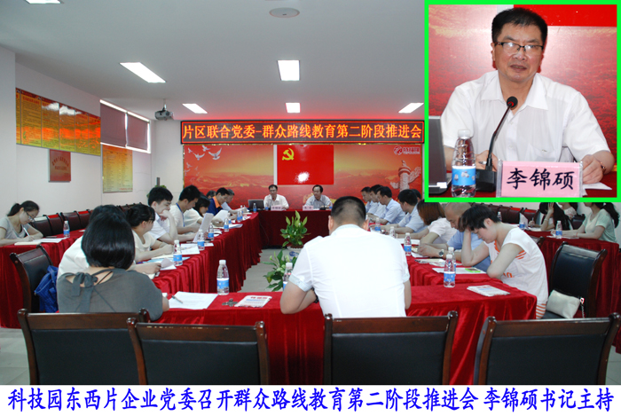 为认真贯彻落实党的群众路线教育,严格按照习总书记提出的“标准要定得高、尺子要把得严、功夫要下得深”等系列指示要求,近日,科技园东、西两个片区企业联合党委在特福隆集团召开党的群众路线教育实践活动推进会,扎实开展第二环节教育活动。科技园东片企业联合党委书记李锦硕主持会议,管委会副主任、主管督导组长朱奇出席会议,东、西片区各企业党组织负责人40多人参加了会议。