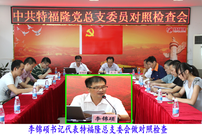 第二阶段会议为召开特福隆全体党员大会。第一环节:一是党总支书记李锦硕通报特福隆总支委会的对照检查情况;二是李锦硕代表总支委会作对照检查;三是党员对总支委会的对照检查开展评议,提出批评意见;领导班子的对照检查认真诚恳,党员的评议与批评到位。第二环节:四个党支部分头召开专题组织生活会。一是四个党支部书记带头开展对照检查、批评与自我批评,其他支部成员对其批评,个人表态;二是四个党支部的支委带头、党员依次开展个人自我批评,其他党员对其进行评议,提出批评意见,个人表态;三是发放测评表进行党员民主测评。期间,科技园督导组朱奇主任与党总支李锦硕书记分别到四个点上进行督察与指导,受到全体党员的好评。第三环节:恢复全体党员大会。一是督导组朱奇主任作点评并发表重要讲话;二是党总支李锦硕书记进行表态发言。