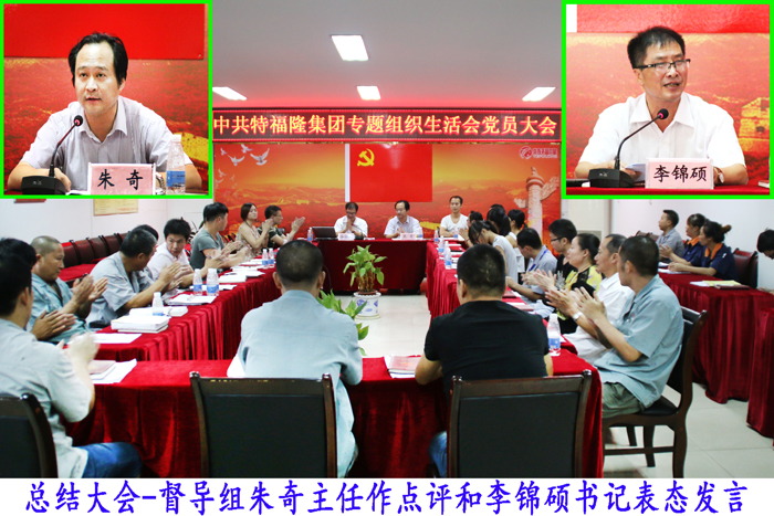 总之,特福隆集团的专题组织生活会在上级领导的重视下,在全体党员的努力下,组织生活会开得很成功。正是李锦硕书记在表态发言中提到的:特福隆的专题民主生活会既是涵养党性的思想武装,又是锤炼党员思想作风的自我磨练,是特福隆党内政治生活的一次难得的实践,这次专题民主生活会认真扎实、“辣味”较浓,体现了整风精神,让每位班子成员和广大党员都经受了一次严肃的党内政治生活洗礼,达到了“洗洗澡、红红脸、出出汗、排排毒”的效果,这是对加强特福隆党组织班子建设及为下一步抓好整改落实与建章立制奠定了良好的基础。