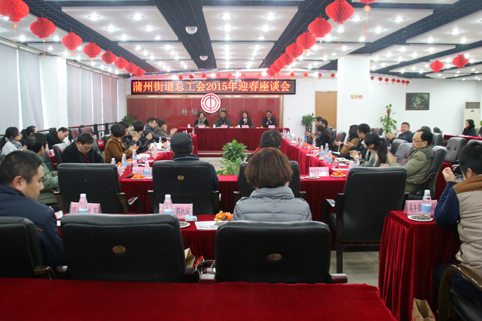 畅叙友情,共谋发展,喜迎新春,蒲州街道总工会2015年迎春座谈会在特福隆二楼多功能厅隆重举行。龙湾区总工会主席徐定海,蒲州街道党工委副书记王余余,蒲州街道总工会主席朱少眉,特福隆党总支书记、常务副总李锦硕就坐主席台,参加本次会议的还有蒲州街道各单位工会负责人50多人。