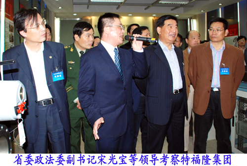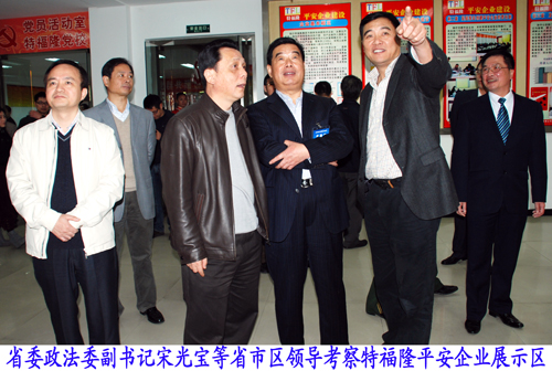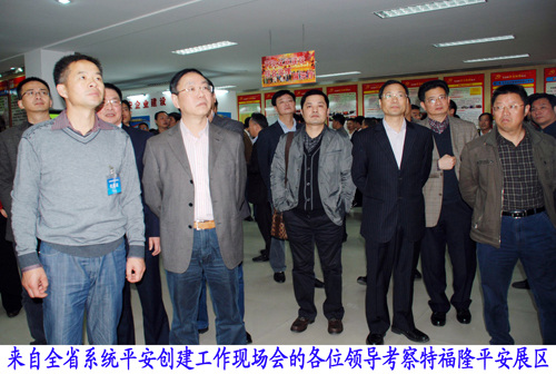 特福隆集团的创建平安企业工作,得到了省、市、区领导的大力支持,省委副书记夏宝龙先后两次来到特福隆视察创建平安企业和综合治理工作。这次考察特福隆的各位领导和来宾们对我们特福隆的“平安企业”创建工作给予了高度评价和肯定。特福隆集团决心要进一步深入强化意识,决心在现有的基础上再深入推进企业平安创建水平使其更上一层楼。