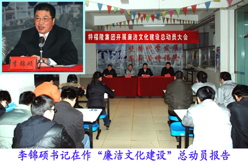 让廉洁意识驻留员工心中,赋予实践,特福隆合理利用电子显示屏标语、宣传栏、企业报、企业网站等资源营造新廉洁氛围,使特福隆集团公司稳步发展注入新的活力。
