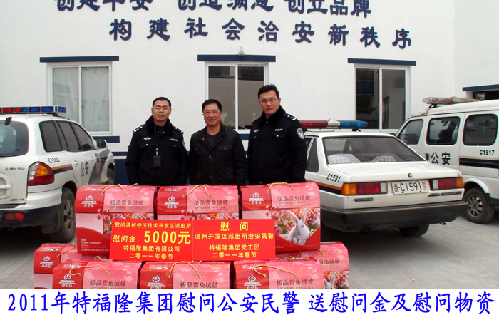 2011年的春节前夕,特福隆集团党组织书记李锦硕带着慰问物资,冒着严寒前往温州经济技术开发区派出所进行慰问,并向他们致以节日的问候,感谢民警们长年累月不分白天黑夜地为确保开发区的平安与和谐作出了不懈的努力。