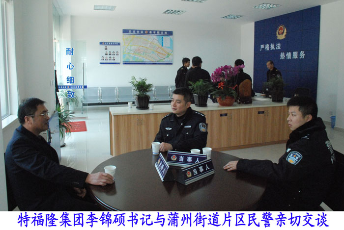 为了更好地体现了“警民和谐一家亲  共同治理保平安”。近日,特福隆集团常务副总、党总支书记李锦硕,共青团书记王元宵对温州高新区(蒲州街道)派出所元庄片区警务室进行了工作慰问,并送去了生活慰问品。李总一行受到了片区警务室领导的热烈欢迎和热情接待。