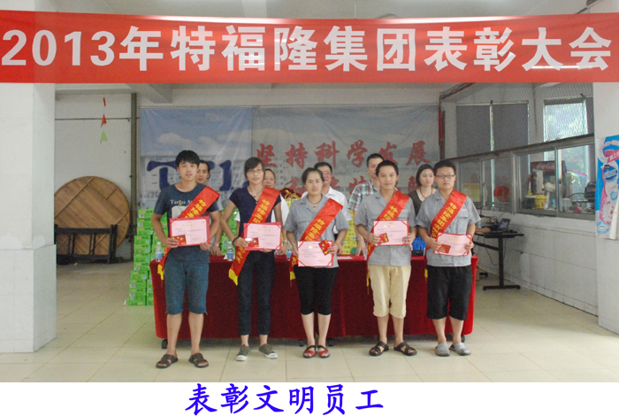 最近,特福隆集团隆重举行2013年度先进表彰大会,表彰自去年下半年至今年上半年以来,各条战线、各个部门所涌现出来的先进集体和先进个人,这次受到表彰的有文明集体、文明班组和文明员工等。