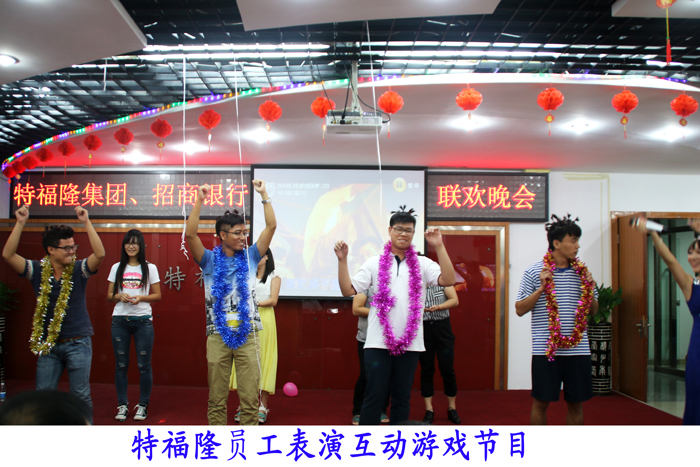 我们特福隆集团继中秋联欢会之后,又迎来了一年一度的国庆佳节。为了喜庆我们伟大的中华人民共和国诞生65周年,同时又为丰富员工业余文化生活、激励公司员工的工作热情,营造温馨愉快的节日气氛,我公司于国庆期间在特福隆二楼文化礼堂,举办了特福隆集团与招商银行共同庆祝国庆65周年联欢晚会。特福隆集团、招商银行的领导们、职工们等近百人共同参加了晚会。参加本次晚会的领导主要有特福隆党总支书记、常务副总李锦硕,特福隆工会主席、生产副总陈更新,特福隆生产副总徐建仁,招商银行龙湾分行王小敏副行长,招商银行龙湾分行部门经理戴浩波,招商银行龙湾分行部门经理朱娅欧,特福隆集团上海科技公司副总经理刘海员等人。