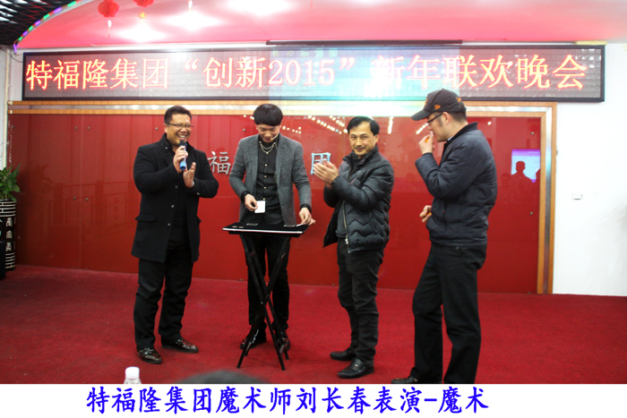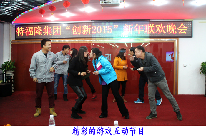 不知不觉特福隆集团又度过了蓬勃发展的一年,喜悦伴着汗水,成功伴着艰辛,告别激情的2014,迎接崭新的2015。近日,特福隆集团有限公司以 “创新2015”为主题的元旦联欢晚会在特福隆集团二楼文化厅隆重举行。特福隆集团党总支书记、常务副总李锦硕,工会主席、生产部副总陈更新,生产部副总徐建仁,另有挺宇集团办公室主任叶爱云,金马文具的办公室主任向家卿等人莅临特福隆参加新年联欢晚会。