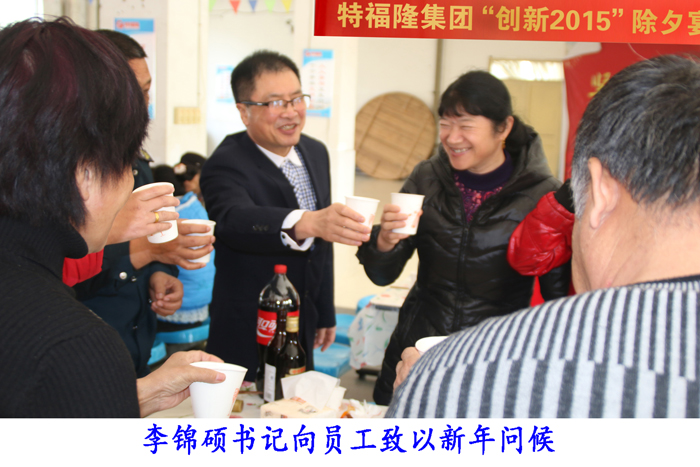 在羊年新春佳节即将到来之际,特福隆2015年辞旧岁迎新春大年三十招待宴会在公司餐厅隆重举行,特福隆集团党总支书记、常务副总李锦硕出席宴会。